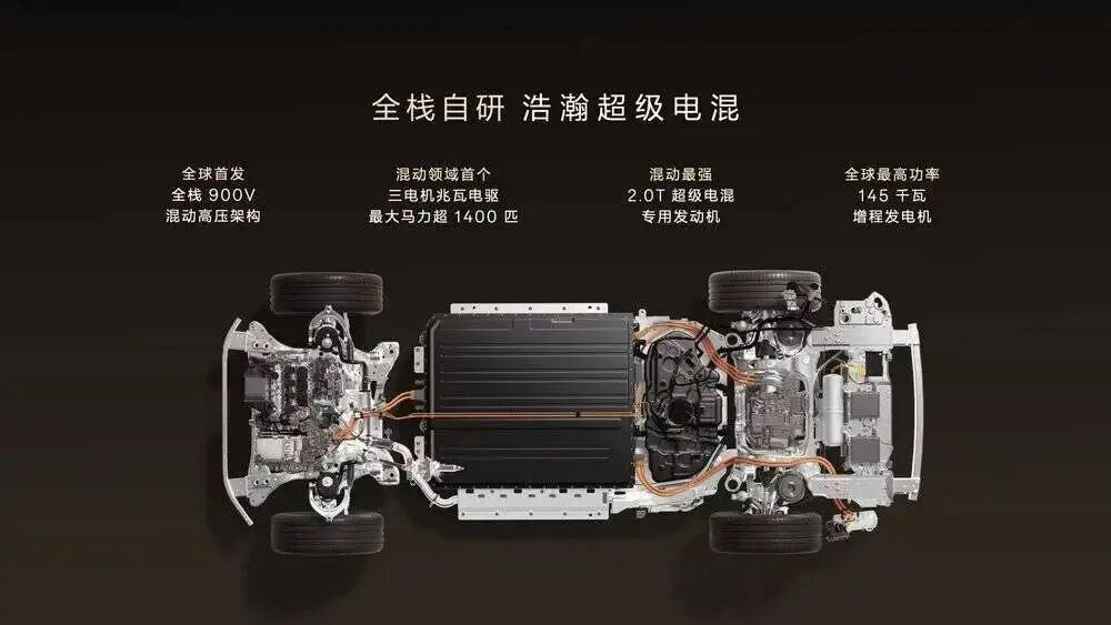 性能:极氪 9X 搭载全球首款全栈 900V 高压混动架构,智己 LS9 还发布三电机四驱版本,百公里提速 3 秒级。