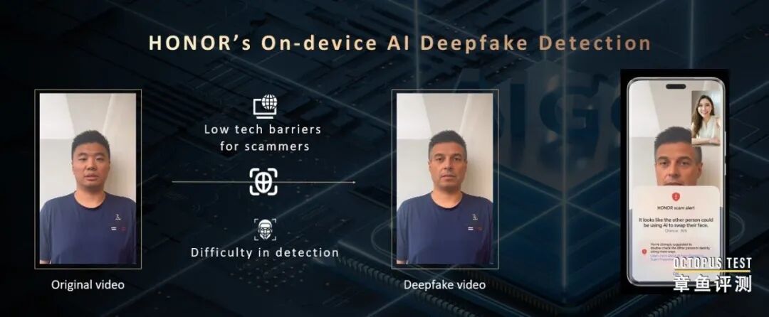 荣耀最新旗舰手机内置了深度伪造检测器。该工具可在设备端扫描视频,检测诸如帧损坏或面部表情不自然等伪造迹象,从而减少延迟并避免数据传输。据该公司称,该功能适用于荣耀自家的通话应用以及微信、WhatsApp、Messenger和Botim等应用,也适用于抖音和Bilibili等短视频应用。