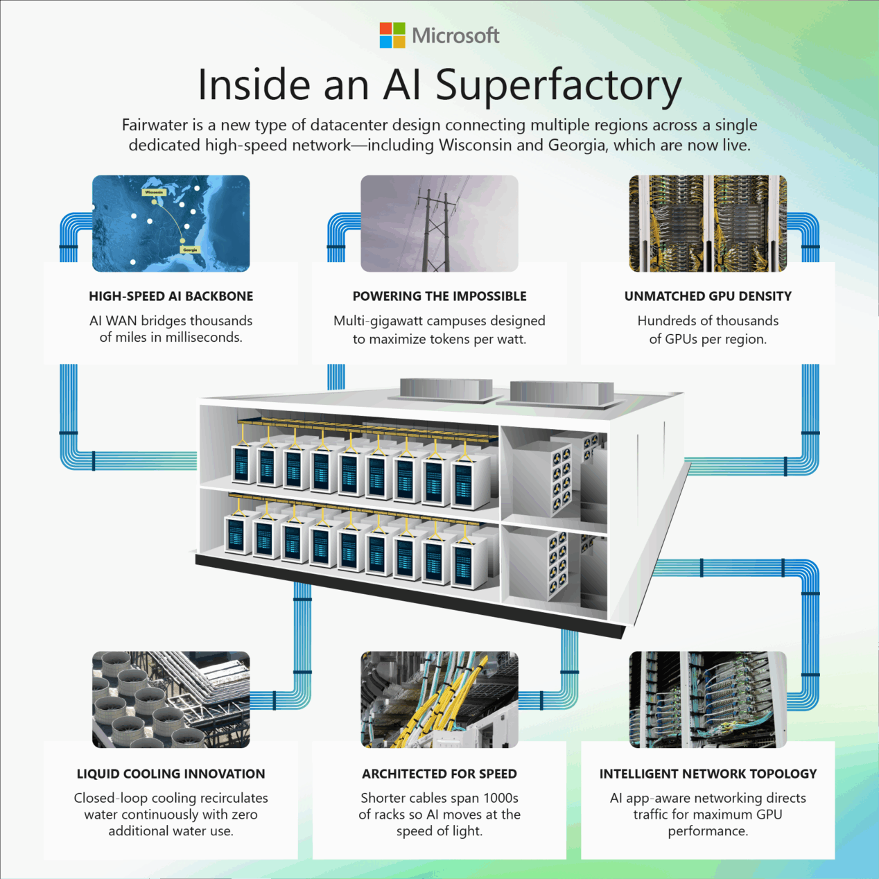 IT之家 11 月 13 日消息,微软当地时间本月 12 日发布了一份博文,介绍了其通过连接多个最新一代 Fairwater 数据中心构建的首个 AI 超级工厂(AI superfactory)。