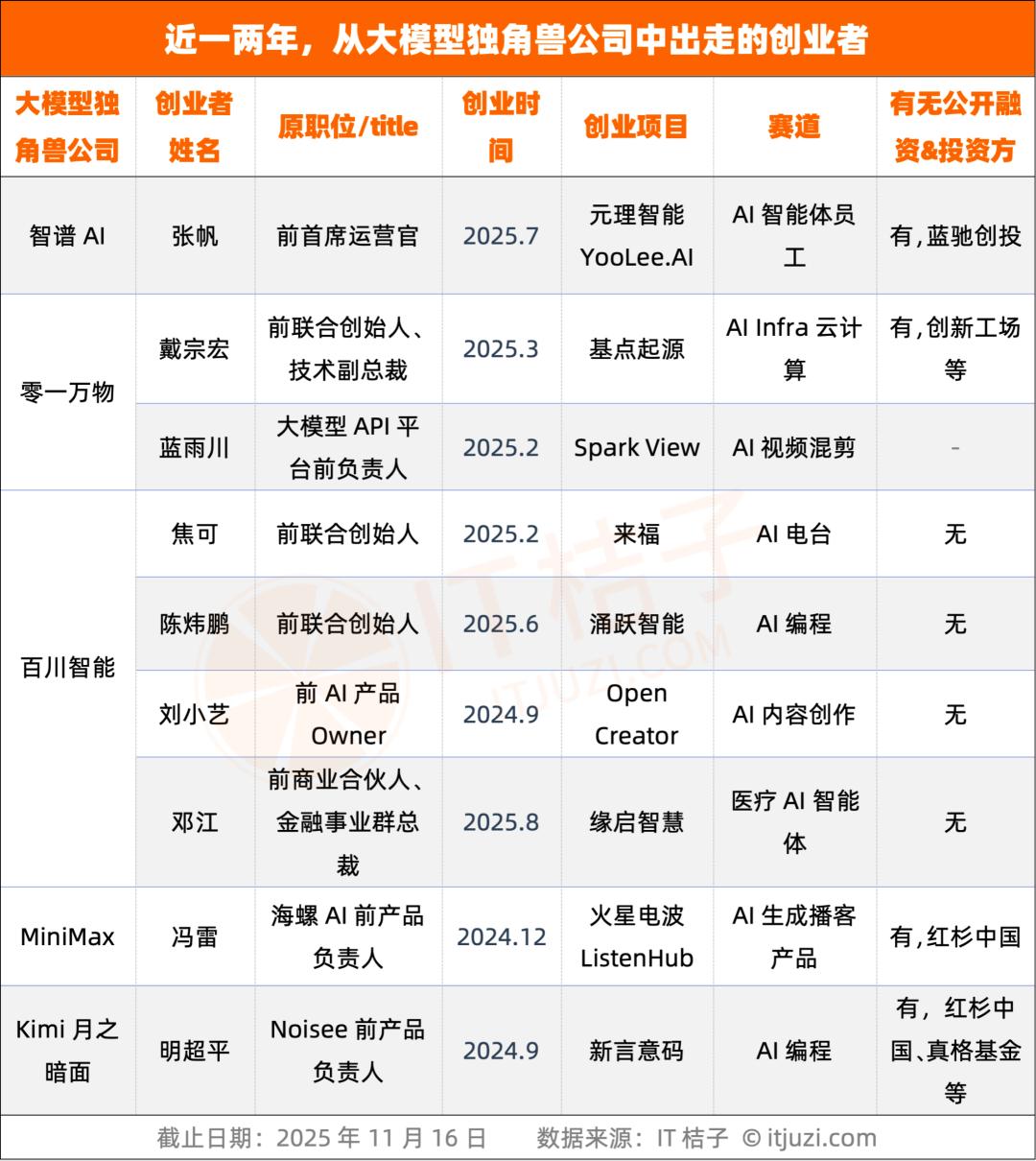 据IT桔子统计,从百川智能出走后创业的高管就有4位。
