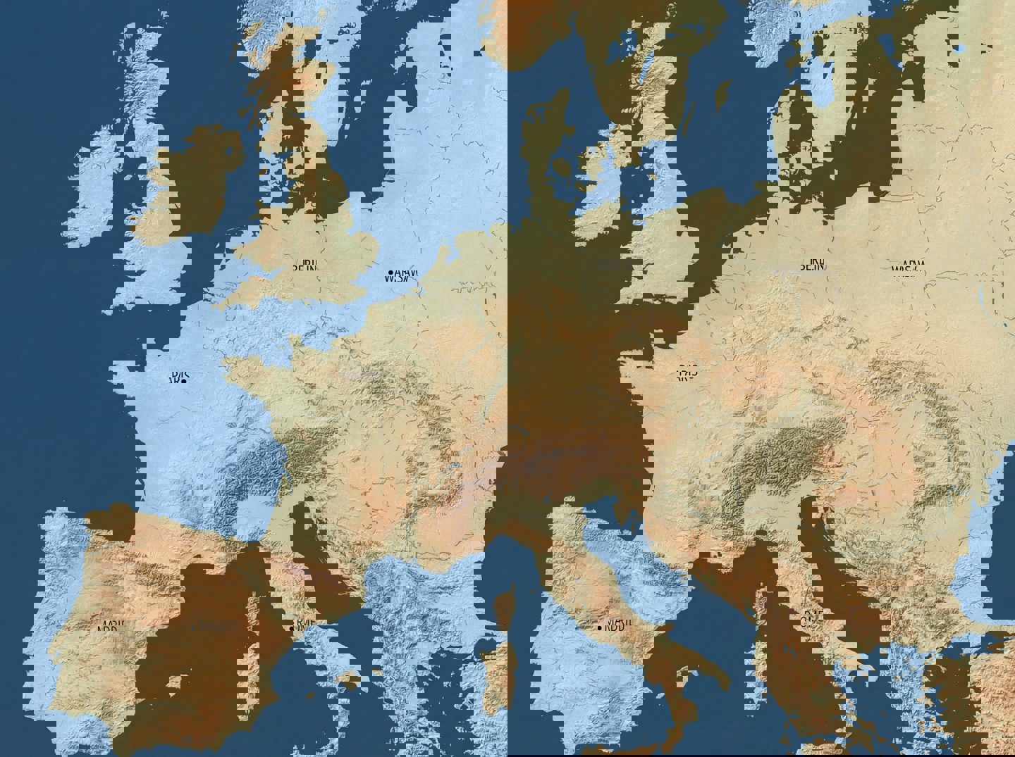提示词:A high-resolution, professional infographic map of Europe. The map should be topographical, showing mountain ranges in relief. Clear, sharp text labels should identify major capitals: "Paris", "Berlin", "Rome", "Madrid", and "Warsaw". The ocean should be a deep matte blue, and the land should be in natural earth tones. Clean, modern typography suitable for a textbook. —ar 4:3新功能的一大突破是引入了“高级文本渲染”技术。该技术大幅提升了图像中文字和拼写的精准度,能够清晰地生成包含复杂文本的海报、菜单、邀请函甚至数据密集型信息图。