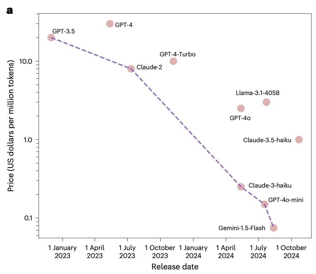 一方面,密度法则指出同能力的大模型参数每 3.5 个月减半。同时在推理系统优化方面,摩尔定律驱动芯片算力持续增强,而模型量化、投机采样、显存优化等算法技术也在不断突破,相同推理成本下,能够运行的模型大小不断提升。实证数据显示,GPT-3.5 级模型 API 价格在 20 个月内下降 266.7 倍,约每 2.5 个月下降一倍。