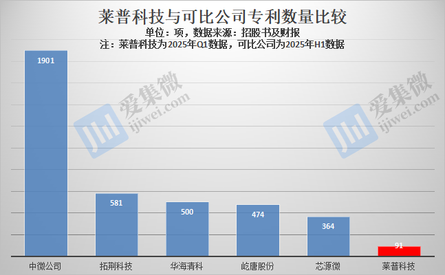根据招股书,如上6大技术体系主要由15项发明专利、66项实用新型专利以及10项外观设计专利构成,合计获授权专利91项。而可比公司中,专利数量最少的是芯源微,为364项。远高于莱普科技。