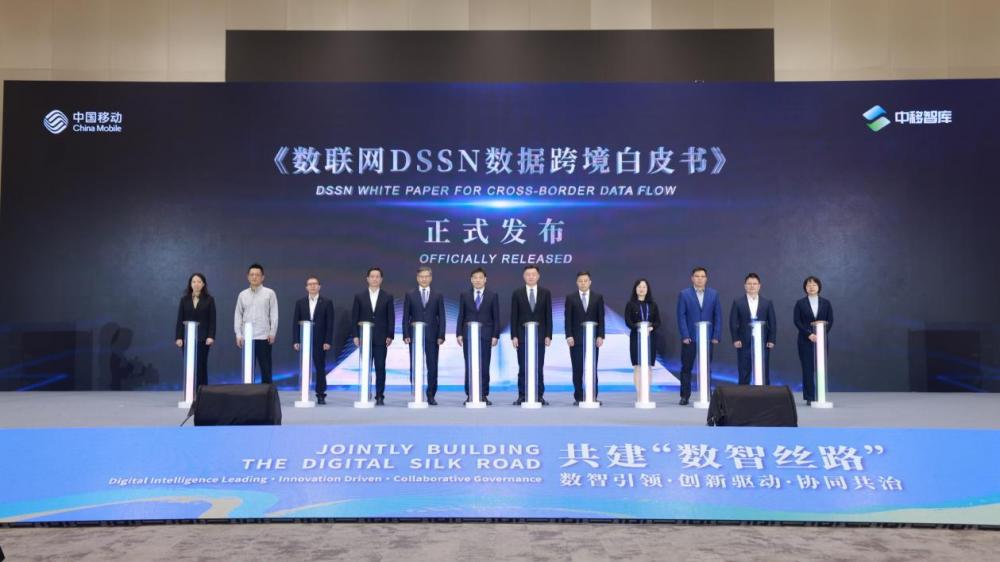 论坛期间,中国移动联合江苏省数据局等单位共同发布《数联网DSSN数据跨境白皮书》,基于中国移动数联网DSSN核心技术以及数据跨境实践,联合专业生态伙伴,围绕数据跨境全生命周期提出数据跨境流动综合解决方案,为进一步实现高水平数据跨境高效便利安全流动进行了有益探索。中国移动研究院(中移智库)发布了报告《山海非远,道合不悖——数智丝路迈向碳硅共生新时代》,系统梳理了数智丝路建设的卓越实践与核心挑战,并有针对性地提出了一系列富有建设性的行动倡议。