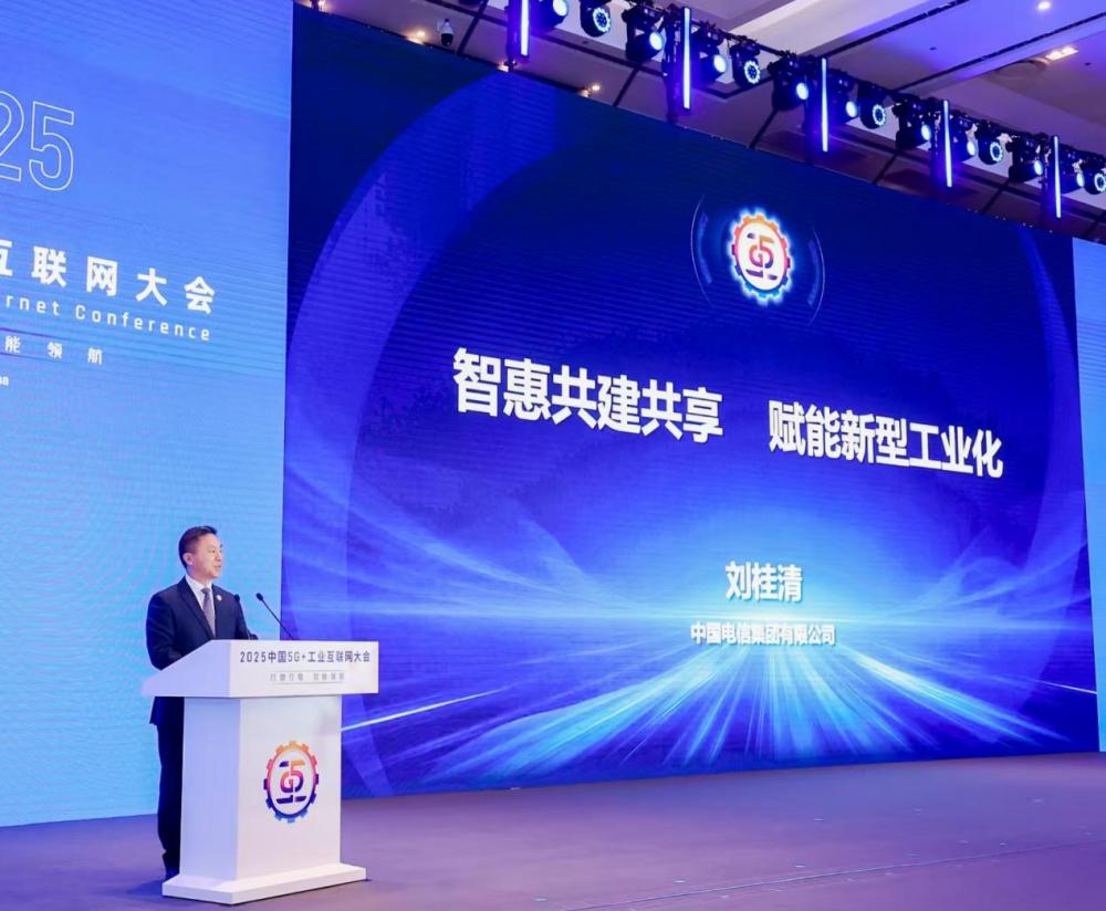 11月22日,2025中国5G+工业互联网大会在湖北武汉开幕,中国电信总经理刘桂清出席开幕式,发表题为《智惠共建共享,赋能新型工业化》的主旨演讲。