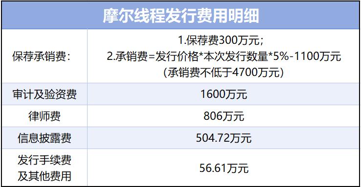 摩尔线程的发行费用同样是年内A股最高,为4.24亿元。在A股市场中,如此高的发行费用并不常见,近5年来,也仅有2021年上市的中国移动、百济神州高于摩尔线程。