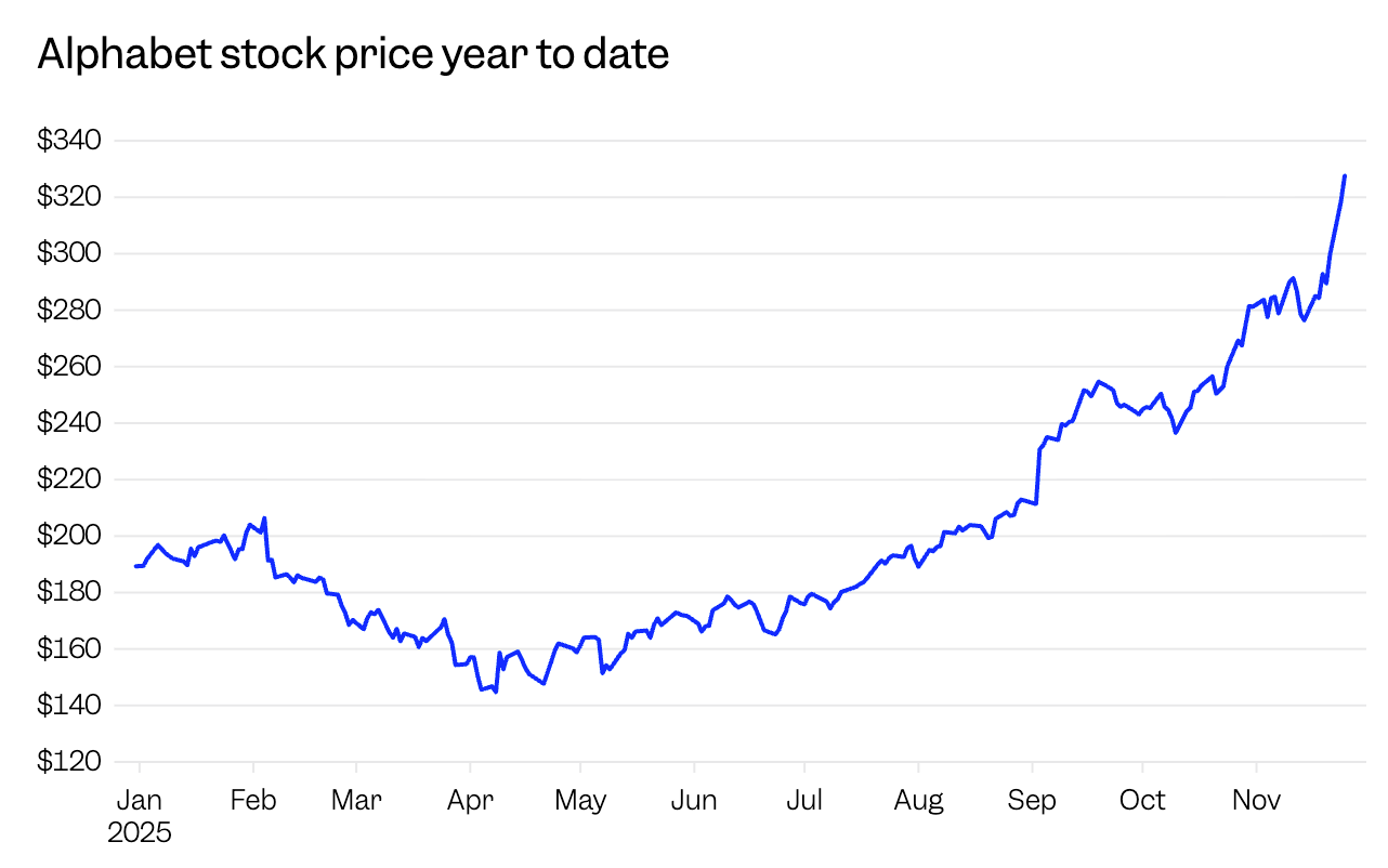 这一新模型缓解了市场中一些认为谷歌落后于竞争对手的担忧,以及“扩展定律”(即AI模型随着数据和计算量增加而提升)放缓的疑虑。自11月18日Gemini 3发布以来,谷歌母公司Alphabet的股价已上涨超过12%。