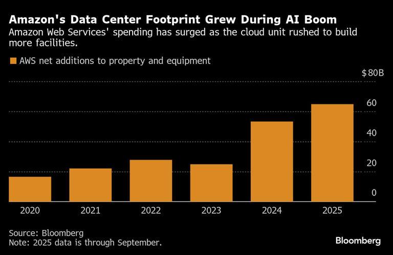 内部文件披露,AWS还在数百个“托管机房”中部署服务器机架。截至2024年末,这些租赁空间提供了亚马逊约五分之一的算力资源。