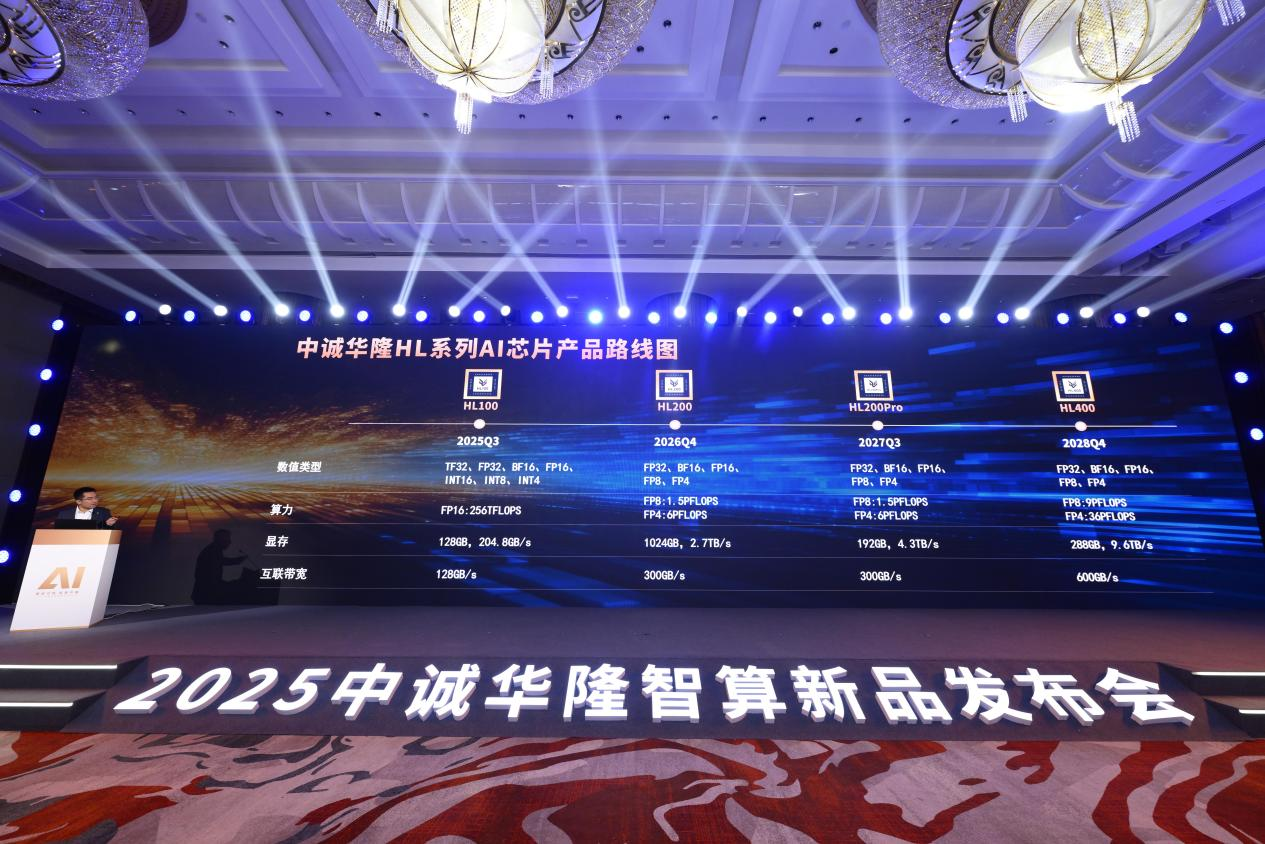 中诚华隆在发布会上还同步披露了清晰的产品路线图。HL系列训推一体AI芯片,除本次发布的HL100以外,公司还在开发HL200(2026Q4)、HL200Pro(2027Q3)、HL400(2028Q4)等多代产品。如果说HL100的目标是实现对国际主流产品性能追平;新一代产品瞄准了更高阶的需求。从目前披露的信息来看,HL200、HL200Pro、HL400将原生支持FP8/FP4,对标国际主流AI芯片性能,全面满足下一代生成式 AI的训练和推理需求。下一代系列产品将有效降低显存压力,支持更大规模模型,在算力与内存上达到甚至超越国际旗舰GPU产品指标水平。