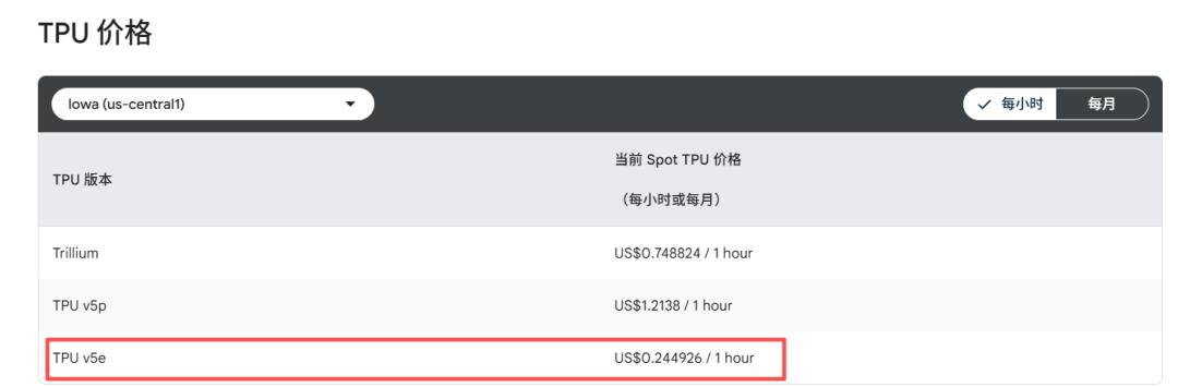 用 谷歌云 的公开定价对比就更直观了:同一个地区,一颗 H100 的 Spot 价格是 2.25 美元/小时,而一颗 TPU v5e 只要 0.24 美元/小时。单芯片的计费价格,差 9 倍。