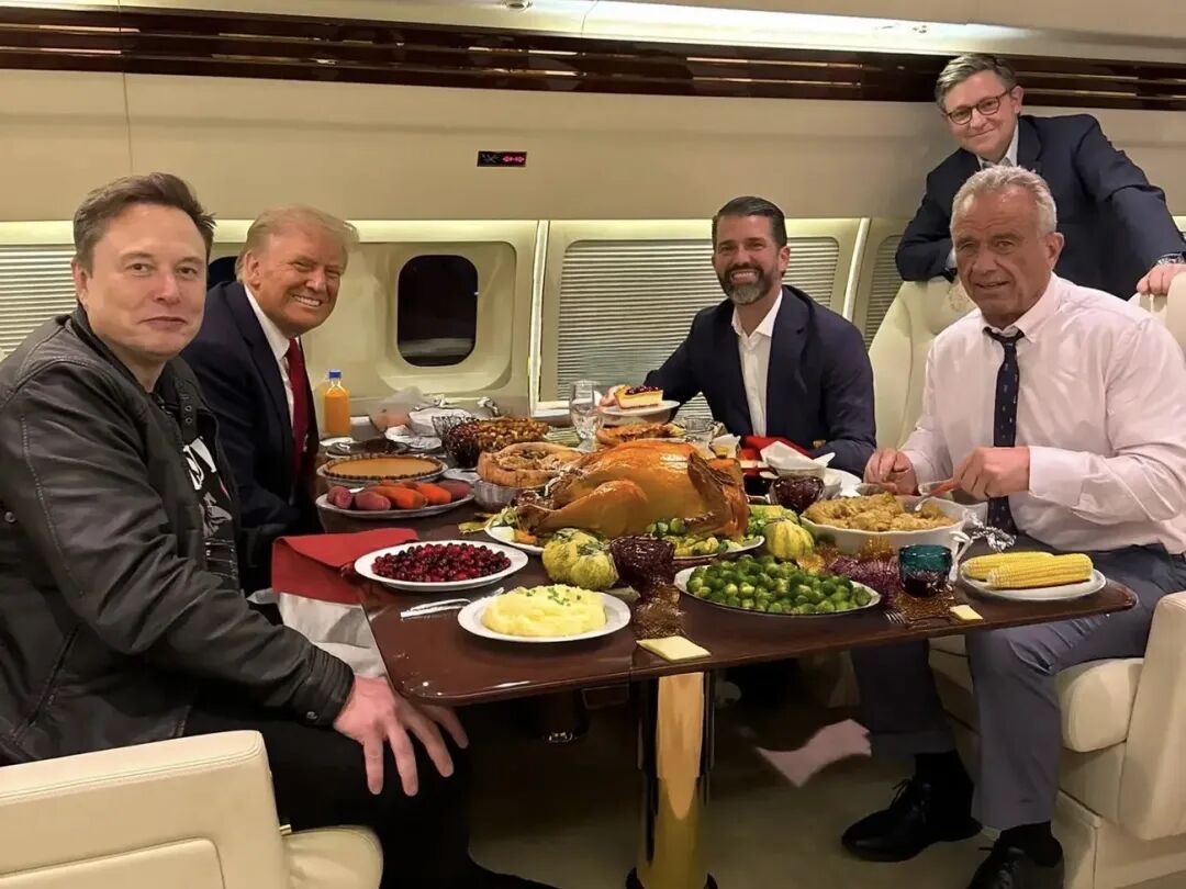薯条和汉堡被换成了孢子甘蓝和蔓越莓,特朗普父子、马斯克全员在桌边「健康饮食」。