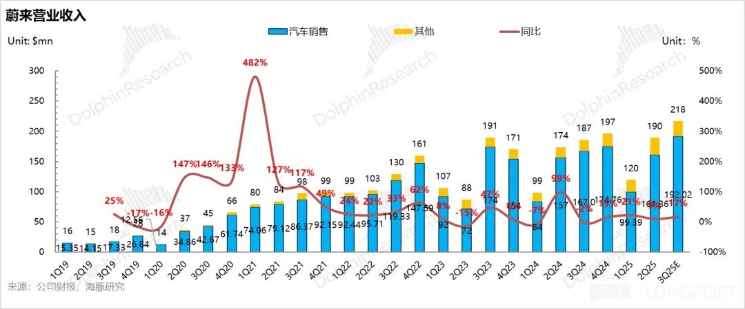 2. 整体收入端基本和市场预期持平:三季度整体收入 218 亿,基本和市场预期持平,而最核心的卖车收入 192 亿,环比提升 19%,主要由于蔚来三季度 L90 的爆销。