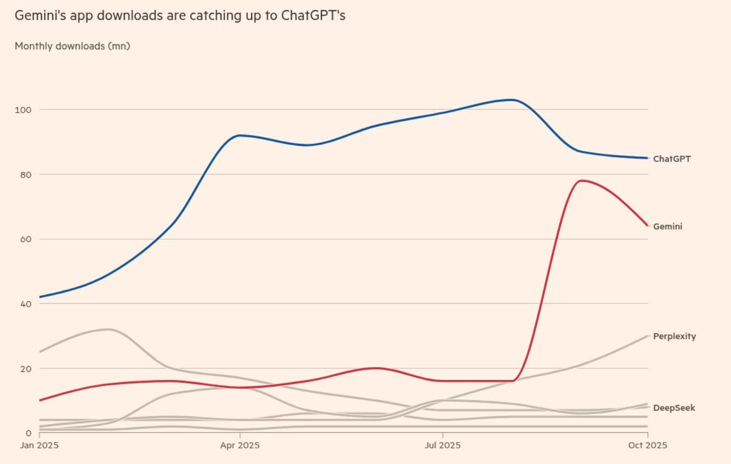 Gemini下载量追赶ChatGPT