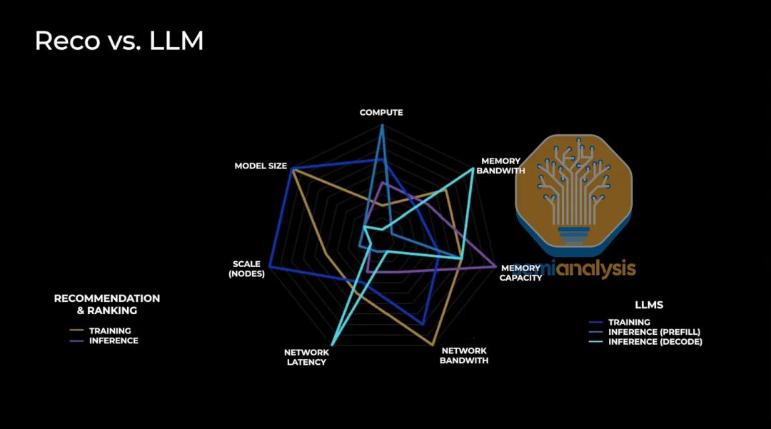 英伟达的优势源于CUDA护城河和开箱即用的广泛开源库,帮助工作负载高效运行,实现高FLOPs和内存带宽。