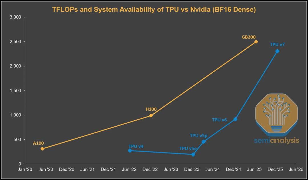 TPUv7 Ironwood是一个优秀系统内的强大芯片,即使芯片在参数上落后于英伟达,谷歌的系统级工程也使得TPU堆栈在性能和成本效率方面都能与英伟达相匹配。