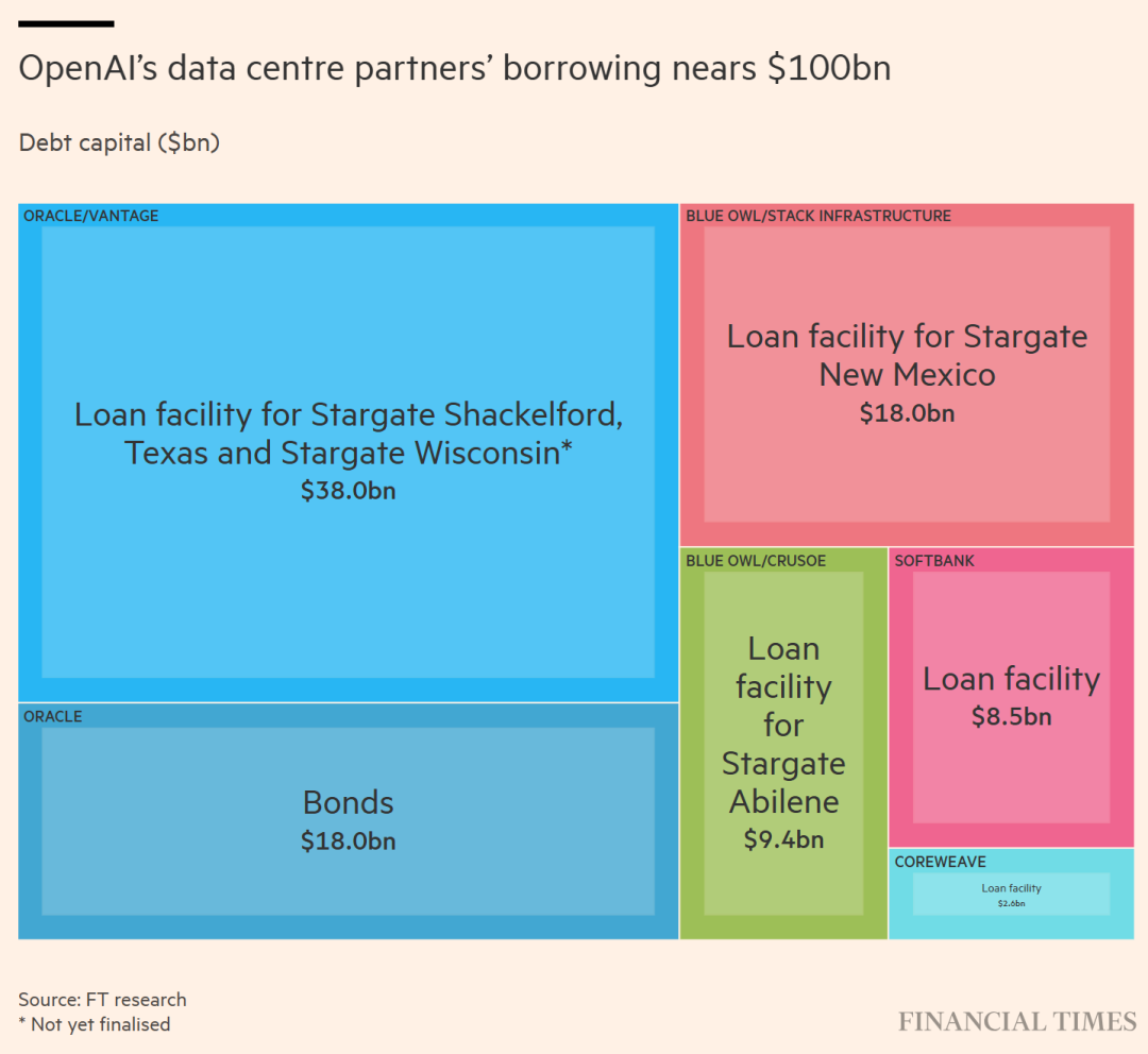 根据《金融时报》的分析,软银、甲骨文和CoreWeave为了投资OpenAI或者帮它建数据中心,至少已经借了300亿美元。