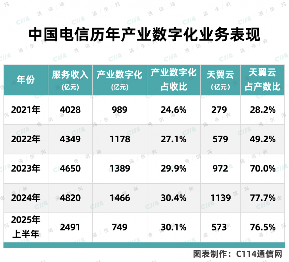 这一背景下,中国电信提出“云改数转”战略,深耕产业数字化业务,不断提升占服务收入的比重,通过优化收入结构抵消移动、宽带等传统业务增长停滞的影响。这也是为什么在全球运营商普遍低增长的大背景下,中国电信能够在“十四五”期间的营收和利润增长分别达到6%和10%。