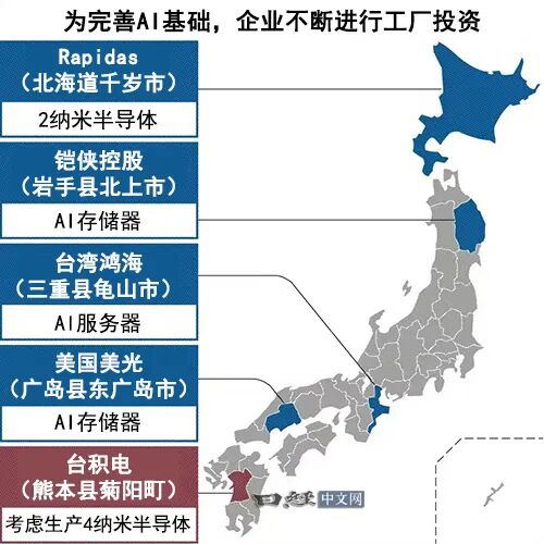 半导体巨头美光科技将在广岛县内新建AI半导体存储器的生产厂房。台湾鸿海精密工业则计划利用其收购的龟山第二工厂(三重县龟山市)生产面向数据中心的AI服务器。