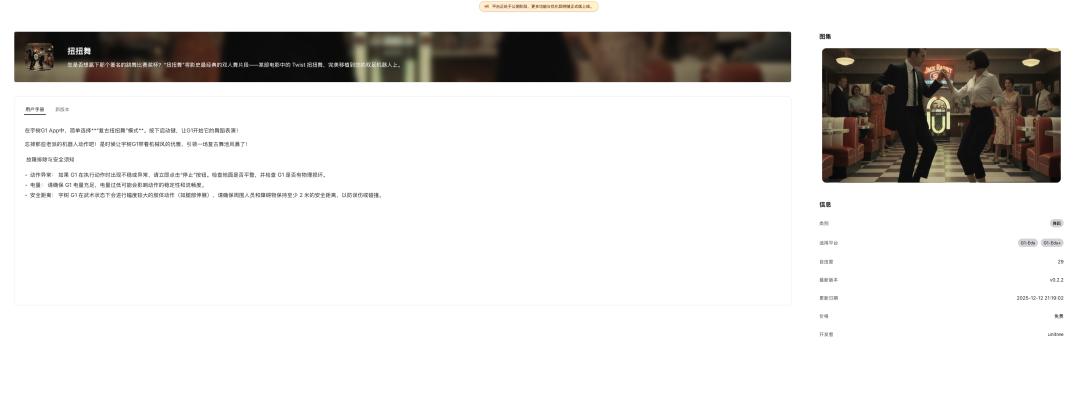就在12月13日,宇树科技终于公测了其人形机器人AppStore,叫做宇树应用商店,简单来说是允许人形机器人开发者与产品经理将其自己的应用上架在自己的应用商场。