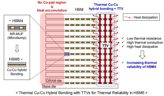 早期HBM的芯片之间用“微凸点(Microbump)”连接——就像用“纽扣”把两片衣服扣在一起,中间有间隙,电阻高,还容易松动;而混合键合(Cu-Cu Bonding,铜-铜直接键合)就是“把两片芯片的铜层直接焊在一起”,没有间隙,电阻低,还特别牢固。