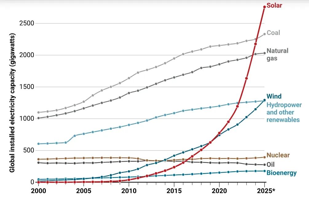 好在,以光伏发电为代表的可再生能源正在蓬勃发展。根据全球能源智库Ember的统计数据,在2025年可再生能源在全球范围内的发电量已经超过了煤炭。能源格局的变化为可持续发展带来了新的希望,这是环境领域难得的好消息。