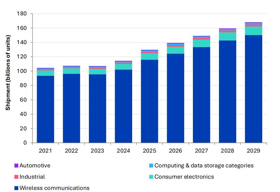 2021-2029年中国按应用划分的半导体出货量总量