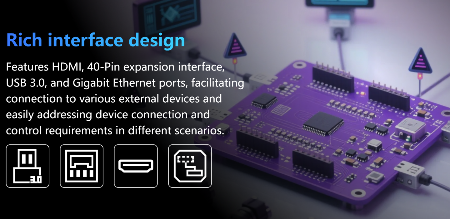 网络连接方面,该机配备了两个千兆以太网口和 WiFi 模块。IT之家援引博文介绍,作为一款开发板,它保留了标准的 40-pin GPIO 接口,方便开发者连接电机、传感器或报警灯等外部设备,同时也支持安装风扇以保证散热。