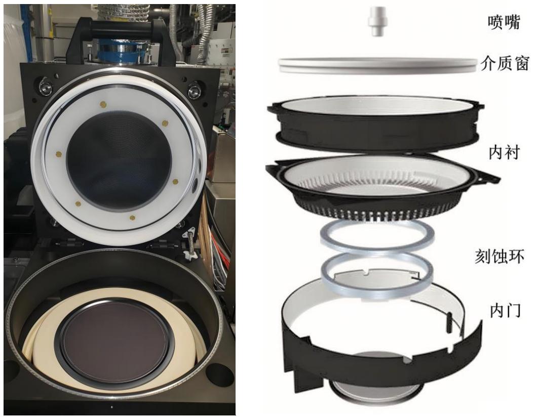 ▲刻蚀设备反应腔示意图(左图)及装配示意图(右图)