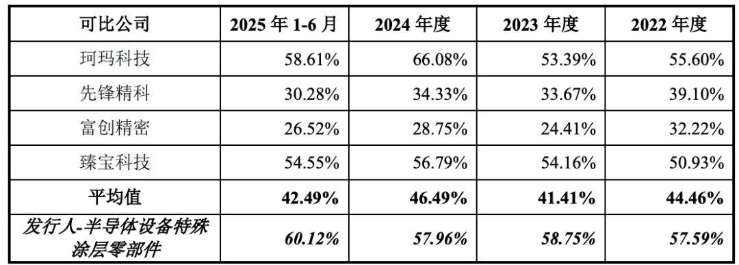 超纯股份半导体设备特殊涂层零部件业务的毛利率与同行业可比上市公司毛利率水平不存在重大差异: