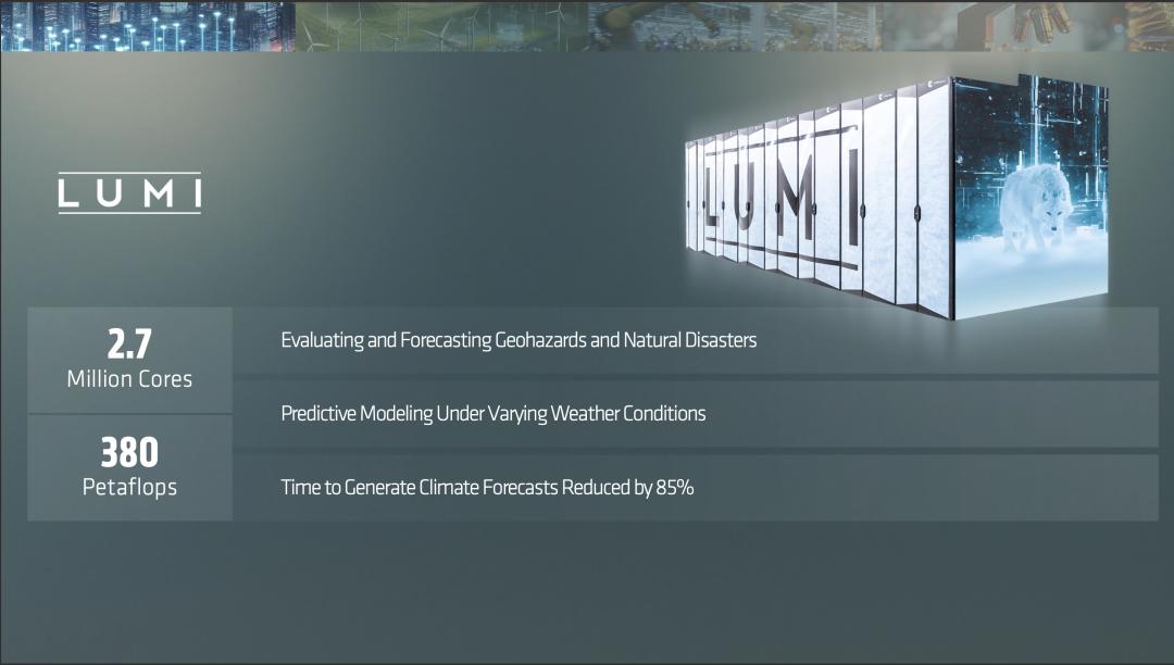 当苏姿丰在台上展示LUMI超级计算机(由AMD驱动的前欧洲最快超算)在气候模拟上的贡献时,更是进一步输出了价值观。