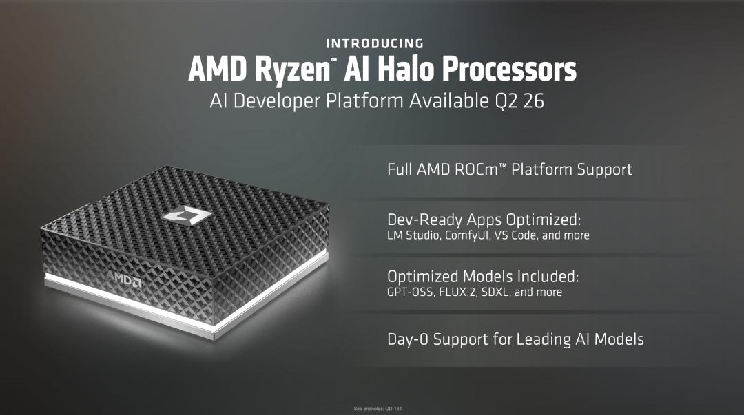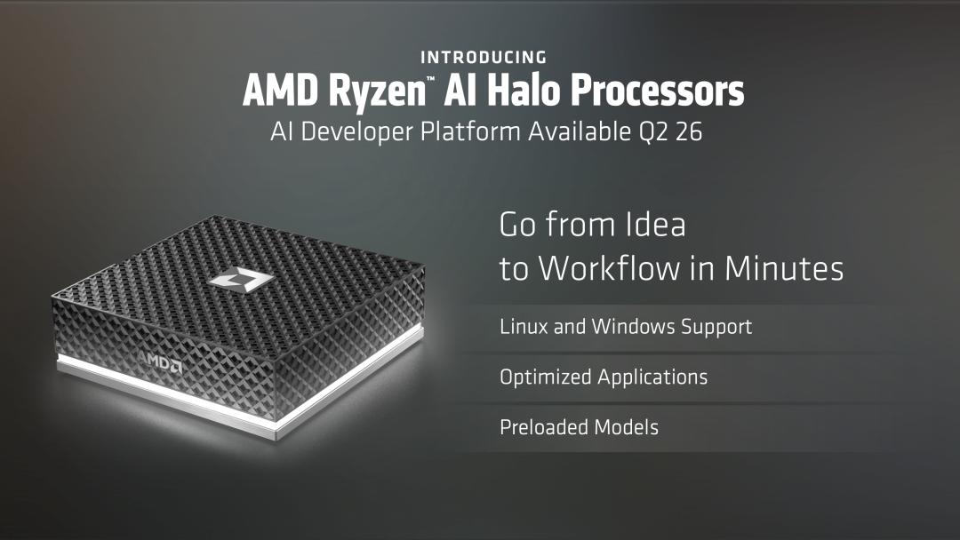 除了硬件,AMD还发布了Ryzen AI Halo处理器,专为AI开发者设计。