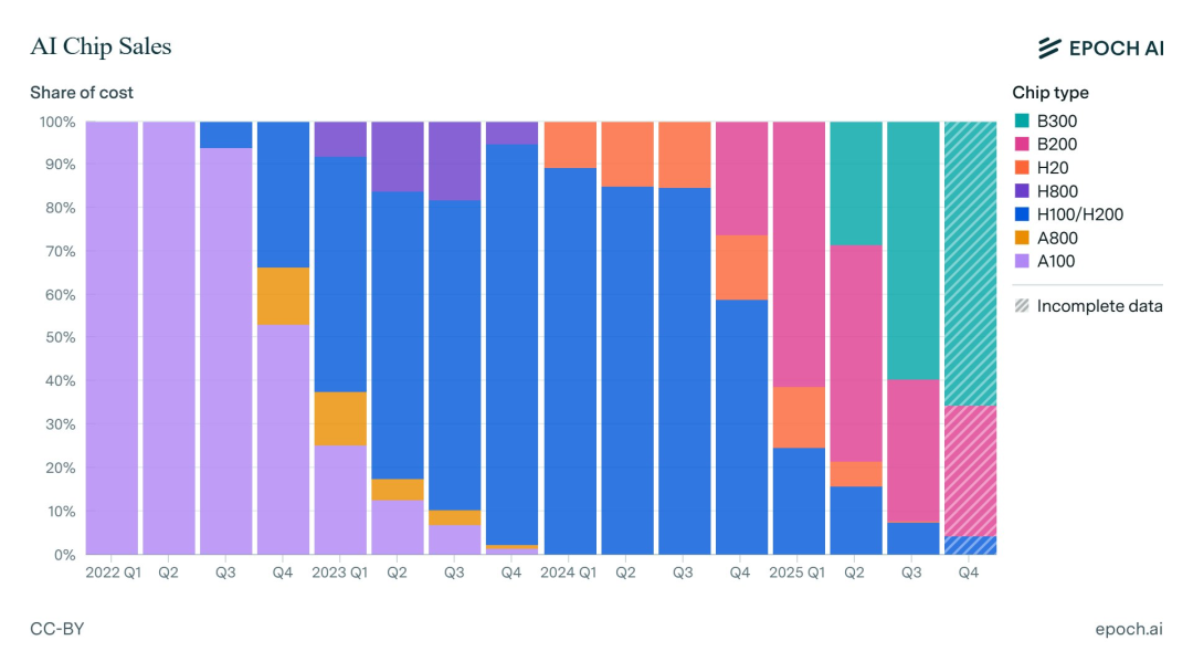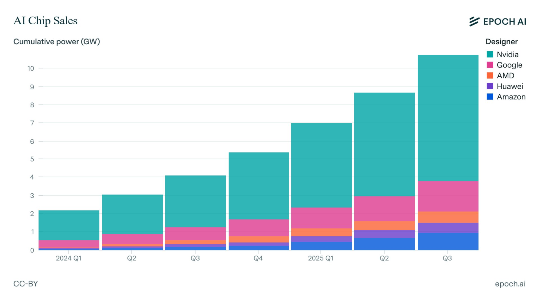 对此,顶级研究机构Epoch AI追踪了全球各大主流芯片设计厂商每个季度的AI加速芯片产量,揭示了这场军备竞赛的底牌。