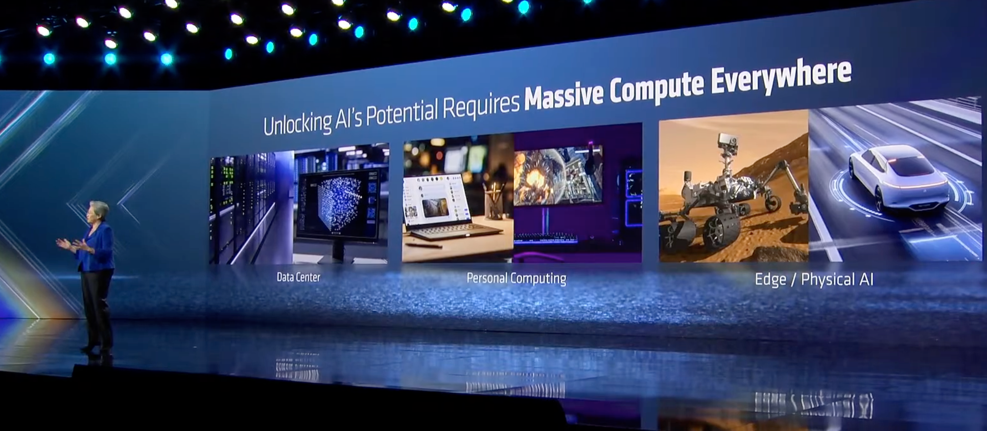 在航天领域,AMD技术正为关键太空任务提供动力——从卫星互联网连接偏远社区,到火星、木星等天体的自主探索。苏姿丰介绍,AMD自适应计算技术支撑“毅力号”(Perseverance)火星车自主运行,同时为美国宇航局、喷气推进实验室、欧洲和印度航天机构的机器人系统提供可靠算力,适配太空极端恶劣环境。