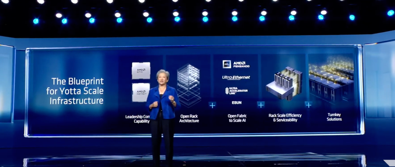苏姿丰指出,满足如此庞大的算力需求,需要整个生态系统协同发力,核心挑战是将AI基础设施拓展到Yotta算力时代需要的规模。这不仅需要出色的性能,更需要CPU、GPU和网络融合的计算领导力,以及开放式的模块化机架设计和易于部署的交钥匙解决方案。为此,AMD打造了面向Yotta时代的下一代机架平台——Helios,该平台在硬件、软件和系统等各个层面实现全面创新。