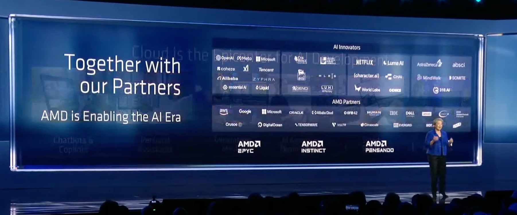 这场开幕演讲,如同一场宏大叙事。AMD在宣布多款重磅新品的同时,也将其广阔的生态图景展现在世人面前,携手合作伙伴释放出其在AI时代的壮志雄心。苏姿丰以及邀请登台的众多嘉宾对于AI发展的分享和洞见也极具启发意义。