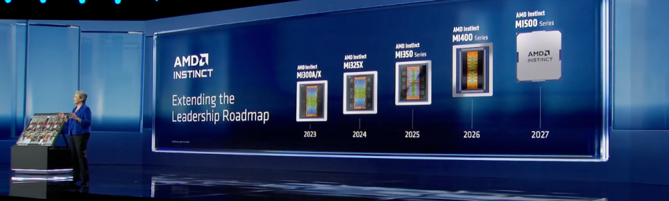 苏姿丰也透露,为持续满足增长的算力需求,AMD不会止步于MI400系列。目前MI500系列研发顺利,将实现AI性能4年提升1000倍的飞跃。该系列采用下一代CDNA6架构,基于2nm工艺制造,搭载速度更快的HBM4e内存,将于2027年推出。