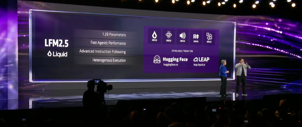 Ramin Hasani指出,无处不在的计算具备三大价值:隐私、速度和连续性,可实现在线与离线工作的无缝切换。他介绍了此次CES期间Liquid AI发布的两款新品:
