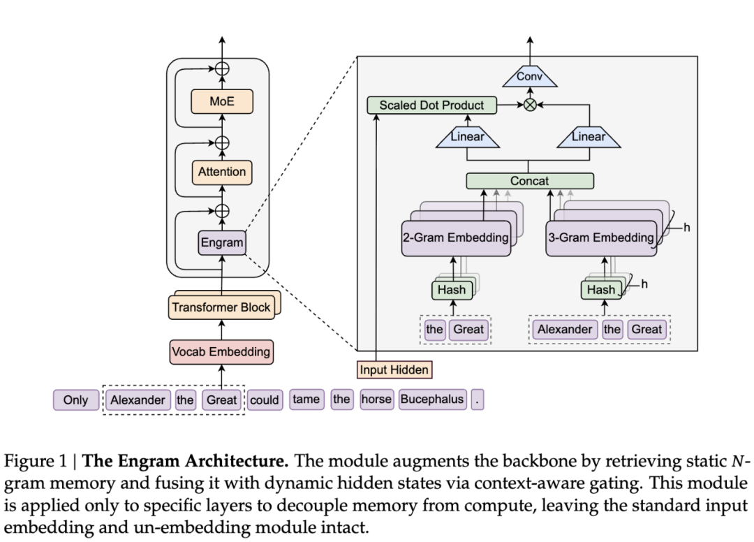 论文解释说,Engram 把局部依赖建模卸载给了查找操作,释放了注意力容量去关注全局上下文。