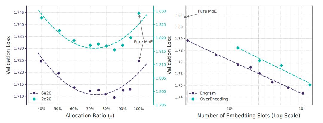 ρ<1则减少路由专家的数量,并将释放出来的参数重新分配给Engram嵌入槽位。
