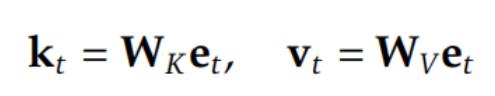 他们利用当前的隐藏状态h_t作为动态的Query,而检索到的记忆e_t则作为Key和Value投影的来源: