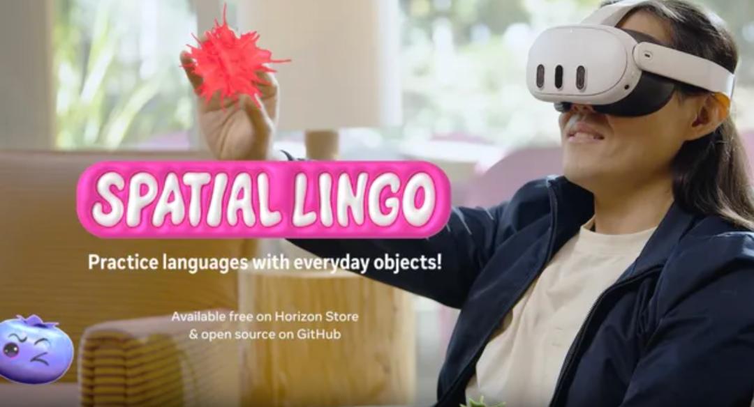 近日,Meta为 Meta Quest 3 /Meta Quest 3S 开发的一款沉浸式语言学习VR+AI 开源语言学习应用正式上线,其融合了混合现实透视功能与AI驱动的物体识别技术。这款名为“Spatial Lingo: Language Practice”的应用,戴上 Quest 眼镜,在真实的卧室、客厅、办公室里,甚至是外出探索,可以一边看实物,一边跟 AI 练外语。