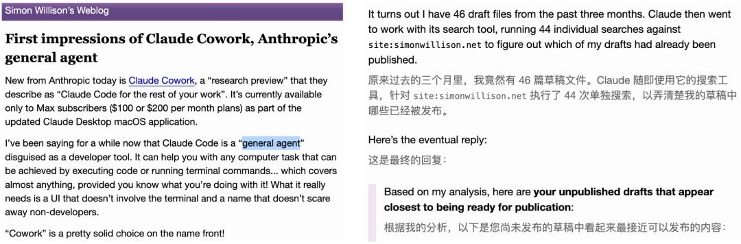 AI大牛Simon Willison实测后,初印象完全与Cowork相匹配。