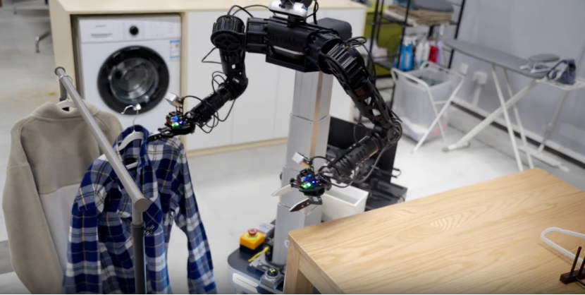 基于此,自变量自研的WALL-A模型,首创VLA与世界模型深度融合的系统范式,可以让双臂机器人完成例如衣物处理、收纳整理、线束整理等多项复杂精细操作。