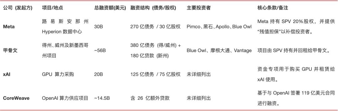 截至目前,Meta、xAI、甲骨文和新兴云厂CoreWeave已通过复杂融资交易筹集超过1200亿美元数据中心资金。