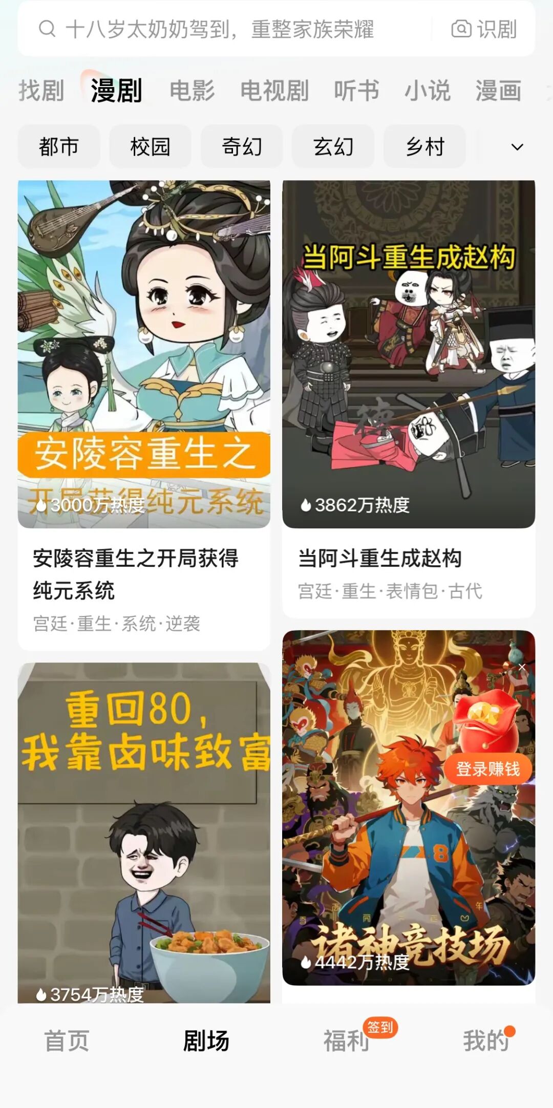 红果短剧漫剧页面