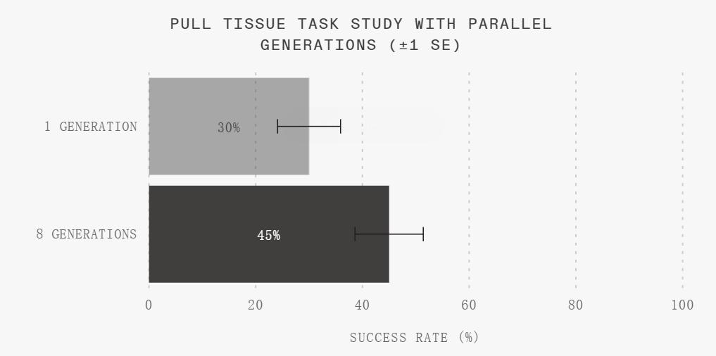 1X 团队注意到像测试时计算这样的方法可以提高任务成功率。受此启发,他们尝试并行生成多个视频,并执行其中质量最好的一个。这个选择过程可以手动完成,但也可以使用 VLM 评估器进行自动化。