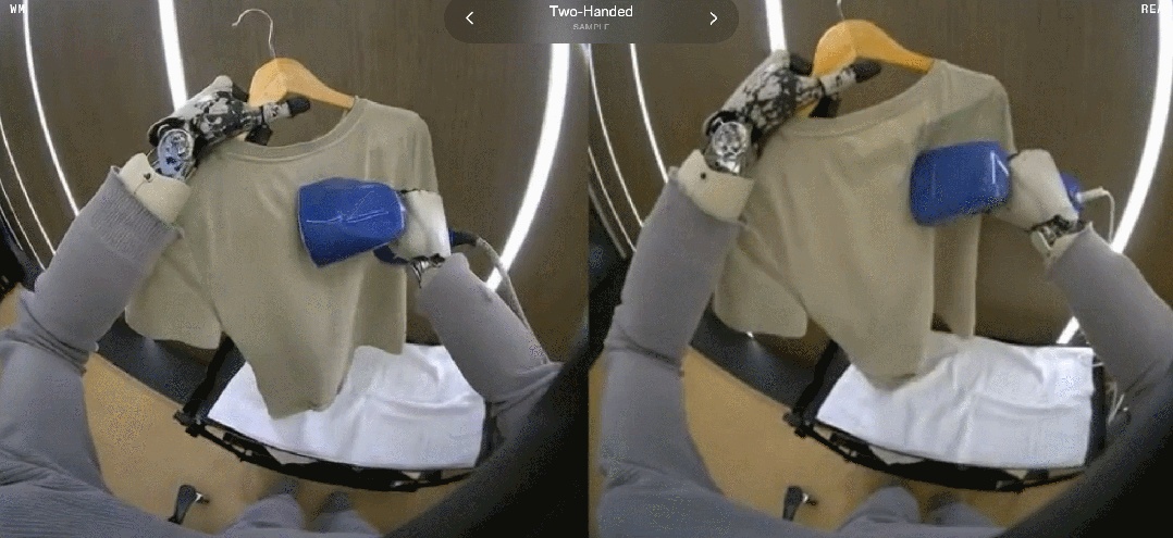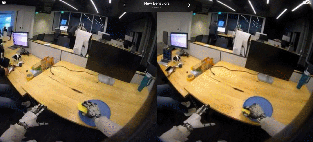 实验结果显示,1XWM 生成的视频与真实世界中的执行过程整体高度一致。将模型生成的视频与机器人实际完成任务后拍摄的视频进行并排对比,可以发现二者在视觉表现上非常接近。这表明,1XWM 在空间结构理解、运动学约束建模以及物理一致性等方面已经具备较强能力。