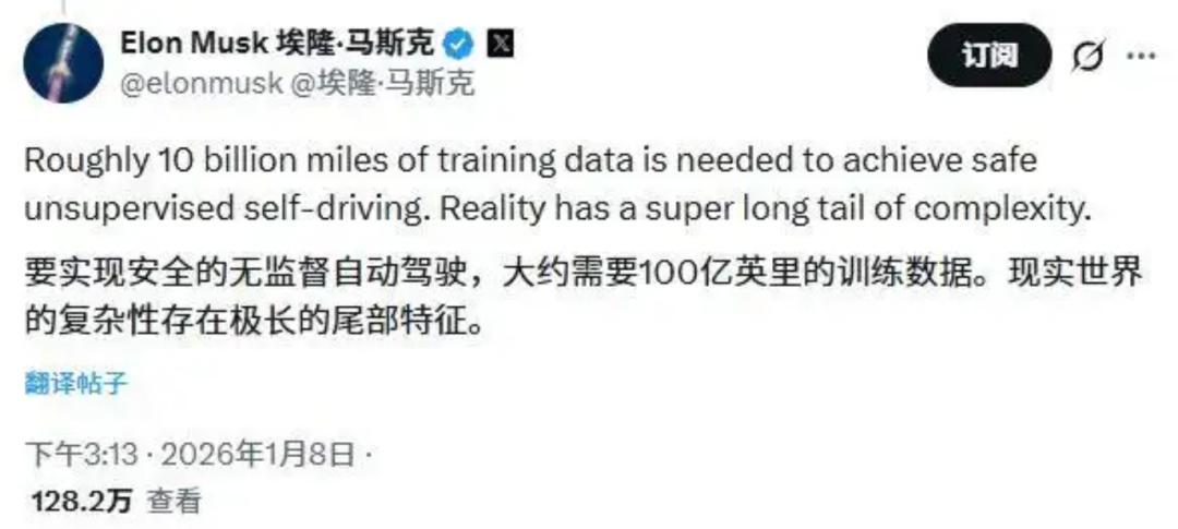 图/马斯克:攻克长尾难题可能需要100亿英里训练数据 来源/互联网 新能源观截图