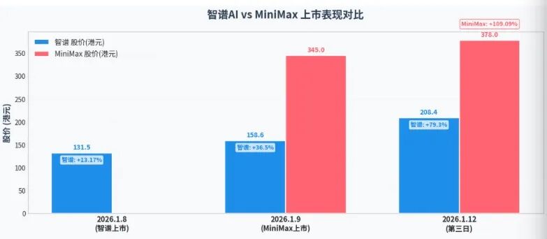 毕竟,1月8日与9日,智谱和MiniMax上市相隔仅仅一天,但市场给出的反馈冷暖分明——智谱首日收涨13.17%,MiniMax则暴涨109.09%。这背后正是由于双方的商业化差距。