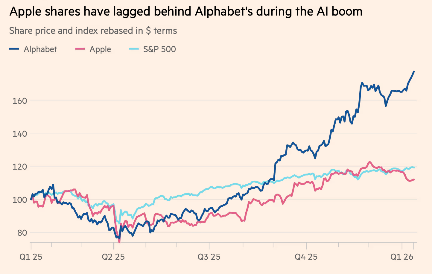 凤凰网科技讯 北京时间1月15日,据《金融时报》报道,苹果公司没有参与烧钱的AI模型和基础设施竞赛,但是却有可能在那些寻求主导这一新兴产业的科技对手之间,扮演“造王者”的角色。